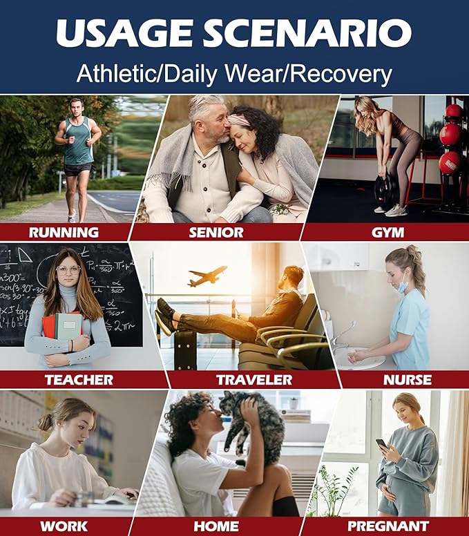 - [Multiple Functions & Applications] - Our compression socks can promote blood circulation, relieve muscle fatigue, provide joint support and improve your athletic performance. Suitable for athletes, teachers, office workers, flight crew, nurses, pregnant, elderly... Suitable for home, outdoor sports, running, gym, exercise, long trips, it can give your legs help and support.
