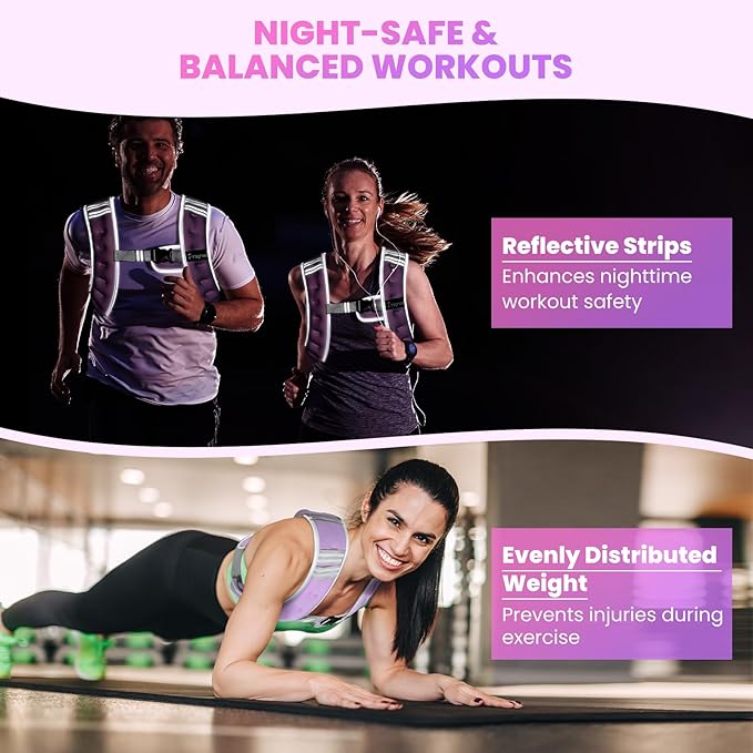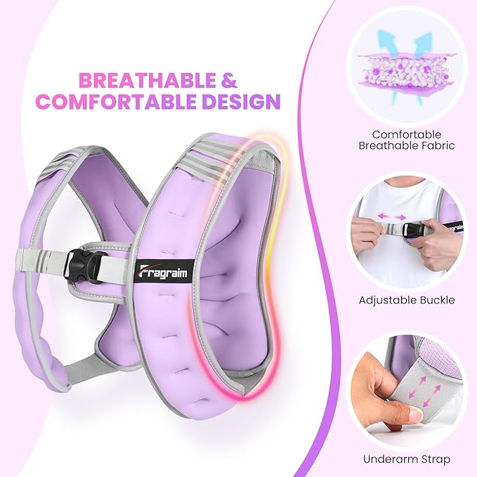 - [BREATHABLE & COMFORTABLE DESIGN] Crafted with lightweight, sweat-wicking neoprene fabric for airflow, our weighted vest for women keeps you cool during intense sessions. The adjustable buckle ensures a snug, chafe-free fit for most body types (men/women), while the underarm strap prevents shifting