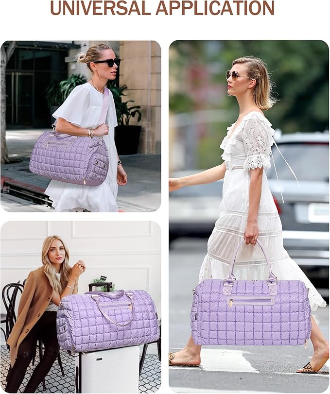 - Dry Wet Separation & Detachable Shoulder Strap: The quilted womens duffel bag has an internal waterproof zipped pocket so you can put wet clothes or wet stuff inside. The shoulder strap is detachable and adjustable which you can easily use or not