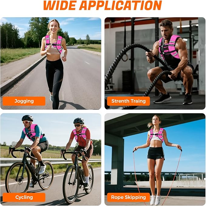 - Reflective Strips for All-Around Safety: Stay visible and safe during low-light or nighttime workouts with reflective strips on both the front and back of the vest. Whether you're cycling, walking, weight training, practicing yoga, or doing aerobic workouts, this vest supports a variety of fitness routines while keeping safety in mind