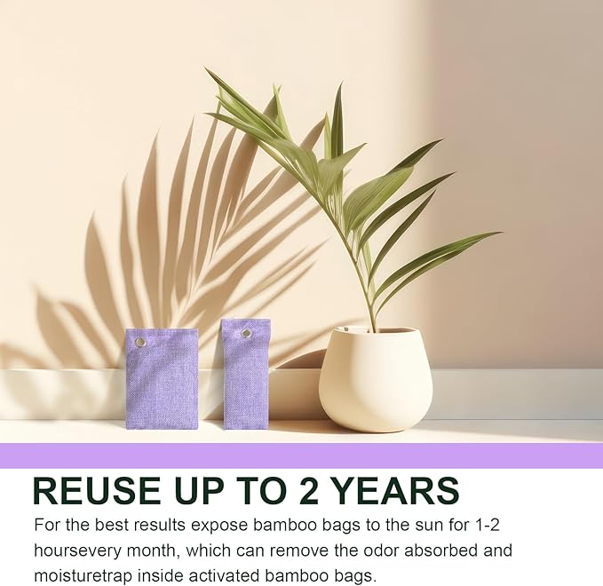 - 2 Years Continuous Fresh Air: revel in 17, 520 hours of natural deodorizer odor eliminator! A simple monthly sunbath recharges the bags, making them a cost-effective choice; Activated charcoal air purifiers for bedroom and drawer deodorizers are also available for any space that needs deodorizer, we recommend using multiple quantities for maximum deodorizing impact as smoke smell eliminator for home