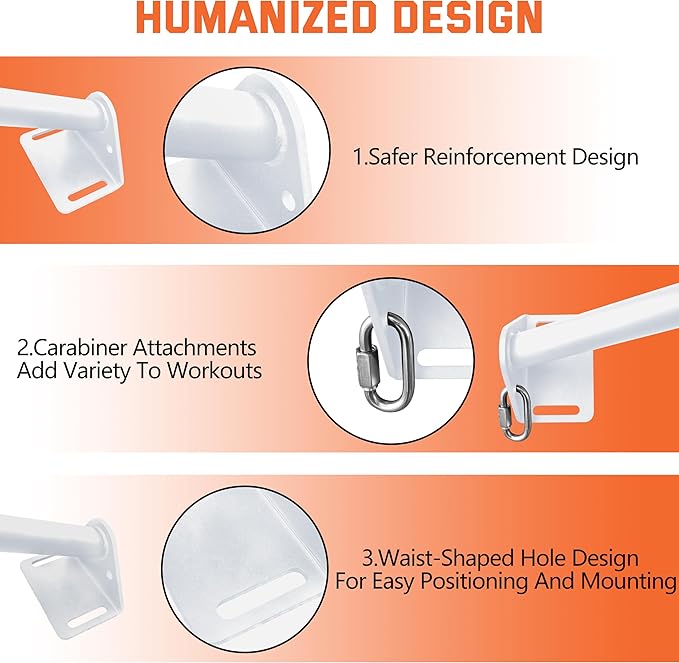 - COMES WITH 2 CARABINERS:Our rogue pull up bar is designed with innovation at heart, coming equipped with two strong holes and high-quality carabiners. You can easily incorporate additional training accessories like suspension straps, training ropes or Yoga straps for a more holistic workout experience