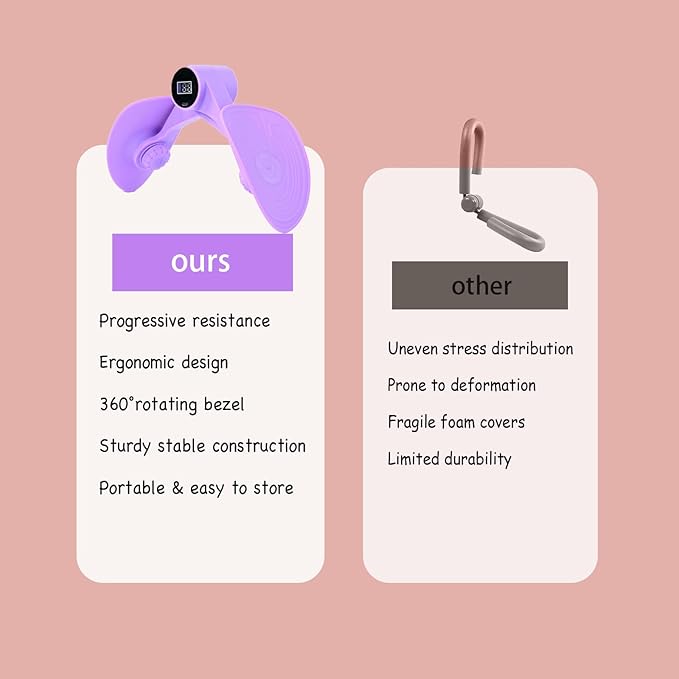 - 【With counter!】This 2.0 upgraded version comes with a smart digital display that accurately tracks every rep, turning your workouts into a fun and motivating challenge! Made with soft, body-friendly silicone, it fits comfortably against your thighs without irritation—so you can focus on strengthening your pelvic floor, legs, and hips safely at home.