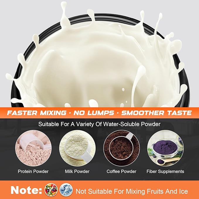 - Efficient Mixing at Your Fingertips: Equipped with two blending modes, the electric shaker bottle offers a 30-second quick mix with one press and a 100-second extended blend with a double press. The high-speed motor of the shaker bottle effortlessly blends protein powder into a smooth liquid without any clumps. Suitable for various water-soluble powders such as protein powder, fiber supplements, and oat powder, eliminating the need for manual shaking. NOTE: NOT SUITABLE FOR FRUITS OR ICE