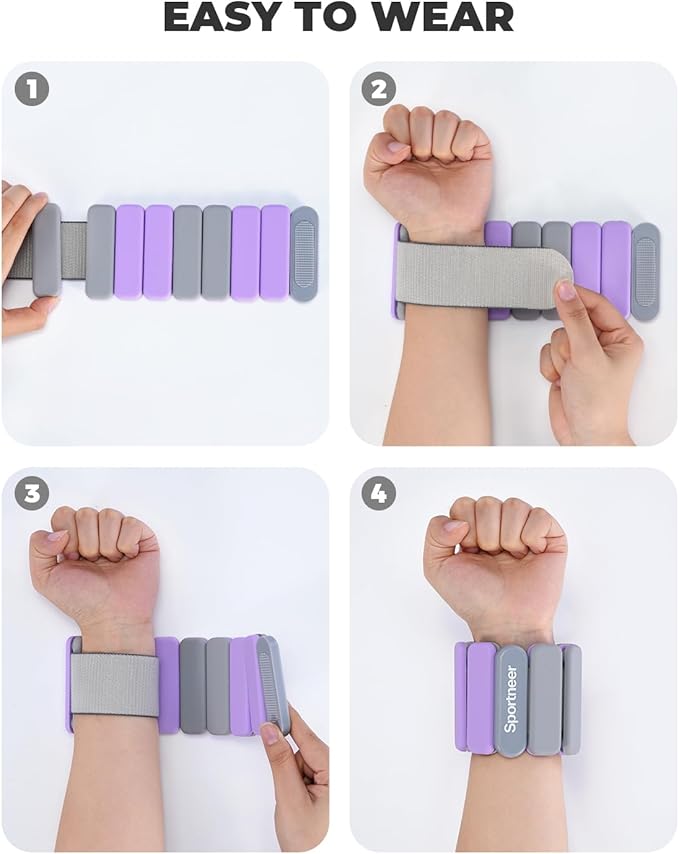 Sportneer 2025 Upgraded Wrist & Ankle Weights for Women Men- 1 Pair (1 lb/2 lb Each) | Adjustable Silicone Weighted Bracelet Set for Gym Yoga Pilates Strength Training Wearable Arm Hand Workout Weights