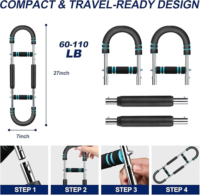 - 【Adjustable Resistance】This arm trainer offers customizable resistance from 40 to 100 pounds, you can adjust the resistance to meet your specific training needs. Whether you are a beginner or a professional athlete, this adjustable spring workout bar can help you with strength training.