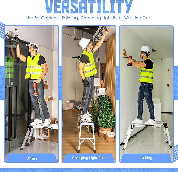 - STRONG ENOUGH FOR THE BIG STUFF - This aluminum heavy duty step stool holds up to 330 lbs and stays solid under pressure. Whether you're grabbing tools from a high shelf or fixing something up top, it's built for real use