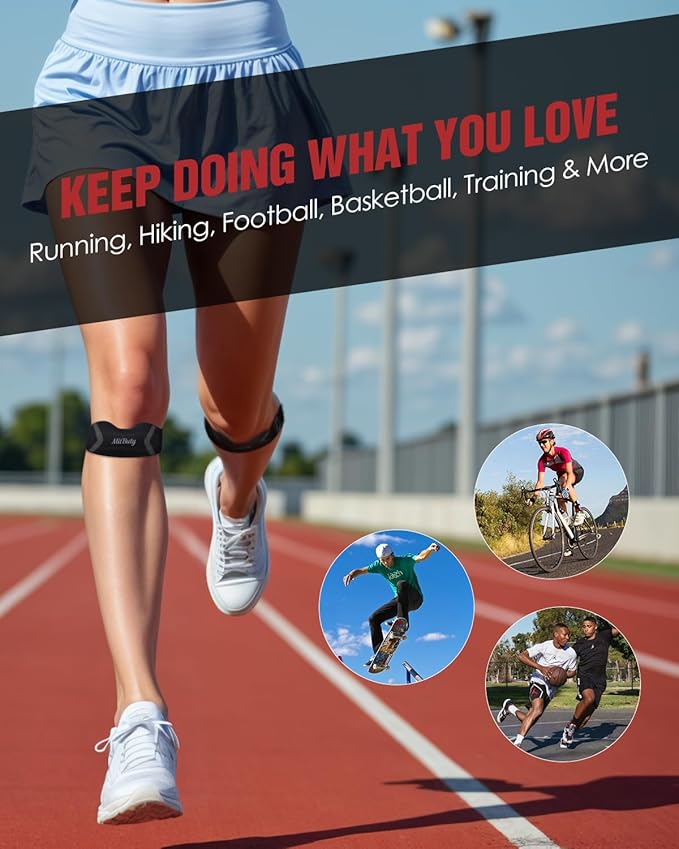 - Made for Active Lifestyles - The MitButy patella strap is your ideal companion for running, hiking, gym training, football, basketball, or everyday movement. Each package includes two patella knee support with four straps (two different lengths), ensuring a custom fit for a variety of users.