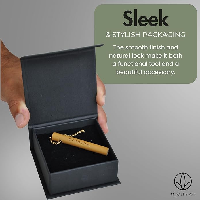 Bamboo Breathing Necklace for Meditation, Mindfulness Tool, Stress Reducer, Eco-Friendly Breathe Pendant, Portable Relaxation Gift for Men & Women