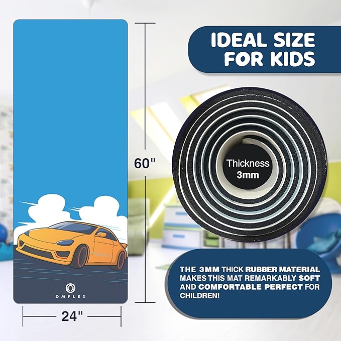 - PERFECT SIZE FOR GROWING KIDS: Spacious 60" x 24" dimensions with 3mm thickness provides ideal cushioning for children ages 5-13. Extra-wide design ensures stability during poses and exercises.