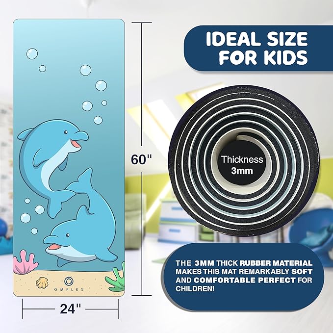 - PERFECT SIZE FOR GROWING KIDS: Spacious 60" x 24" dimensions with 3mm thickness provides ideal cushioning for children ages 5-13. Extra-wide design ensures stability during poses and exercises.