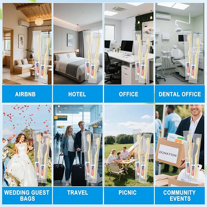 - Wide Application: These individually packaged toothbrush sets are perfect for travel and camping enthusiasts, hotel/motel operators, daily use, guest supplies, and more. They also make great donation items for homeless shelters, charities, and community services, helping others maintain basic hygiene and health.