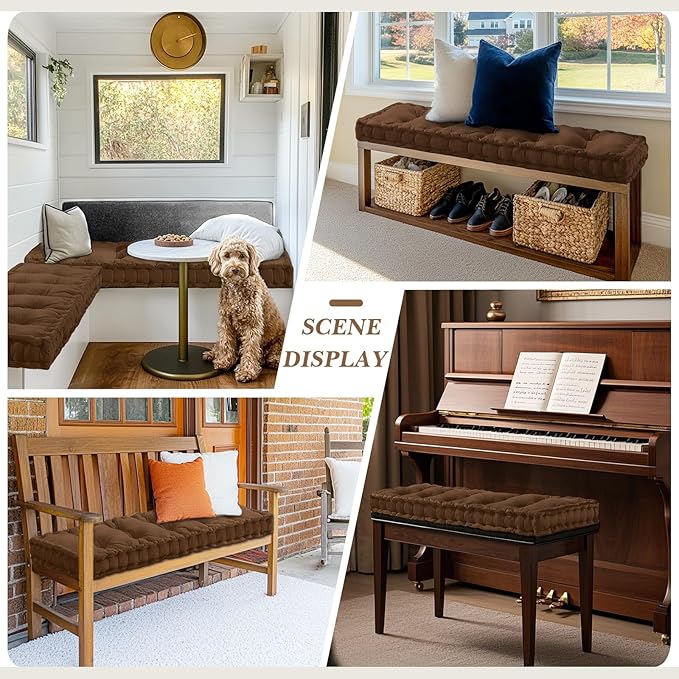 - Versatile for Most: this bench seat cushion can be applied as bay window bench, sofa cushion, floor cushions, floor pillow, piano cushion, breakfast nook cushions, entrance cushion and others; Also ideal for various settings, such as patio bench, garden bench, or even indoor seating, which can seamlessly with different furniture styles
