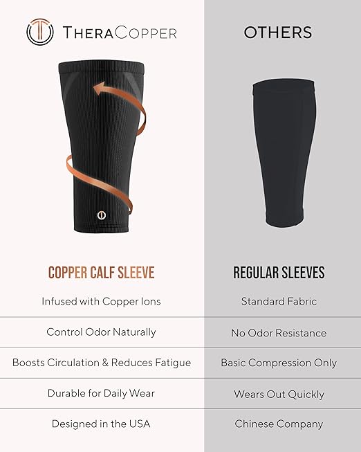 - YOU DESERVE THE BEST: At TheraCopper, we’re an American brand specializing in real copper wellness products built for results you can feel. Our copper compression calf sleeve is engineered for maximum performance, support, and comfort. Not completely satisfied with our shin compression sleeve for shin splints? We’ll make it right—no questions asked.