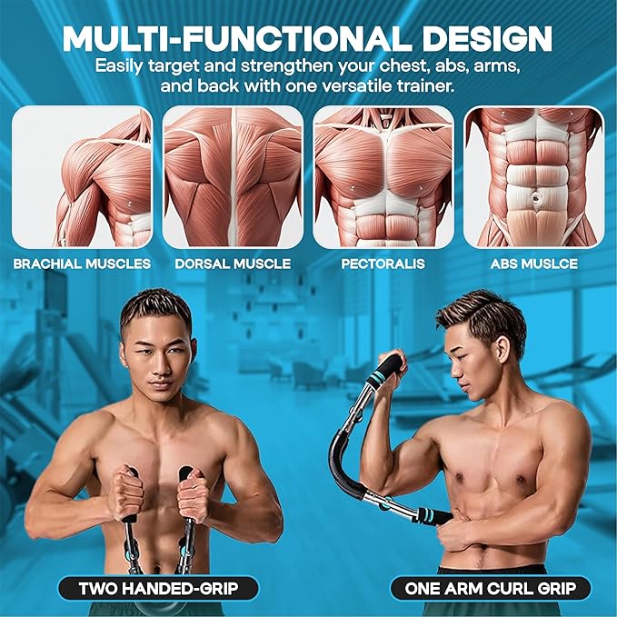 - Quality Build for Serious Gains – Made with pro-grade steel springs, the chest exerciser for men is made with long term, day-to-day use in mind. The chest workout arm trainer offers solid stability and reliable resistance, and fits easily into any gym setup or exercise equipment at home