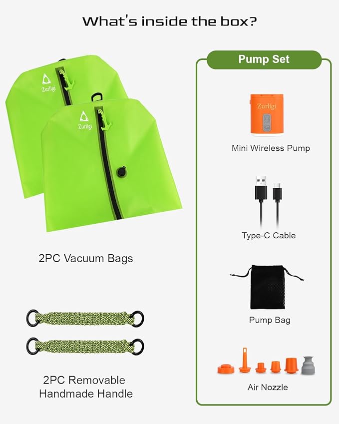 Zurligi Vacuum Compression Bags with Pump for Travel - Reusable, Portable Travel Pack Vacuum Bag Kit for Suitcases, Backpack