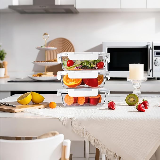 - STACKABLE DESIGN: These glass containers are designed to stack with lids attached, saving space in your fridge or pantry while keeping your meals organized and easily accessible.