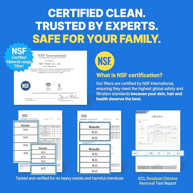 - [Technology You Can See 3-Stage Composite Filter System] Backed by Science Our advanced 3-Stage Carbon Composite Filter delivers powerful purification performance: Sediment Layer reduces visible rust and dirt, Compressed Activated Carbon Core – Absorbs chlorine, odors, and organic chemicals, Micro-Purification Membrane – Filters micro-impurities for cleaner, Ideal for daily use for up to 1 month per filter Laboratory-tested to meet international water safety standards Pure science.