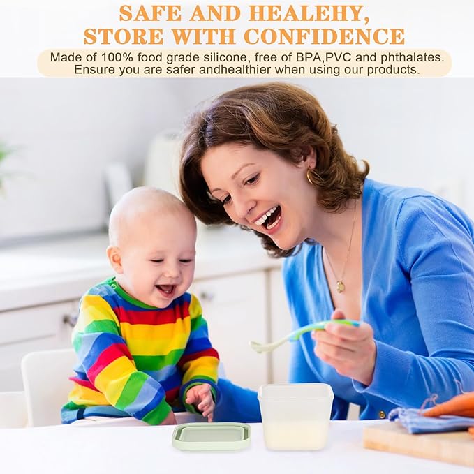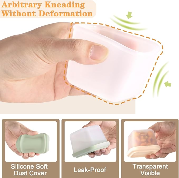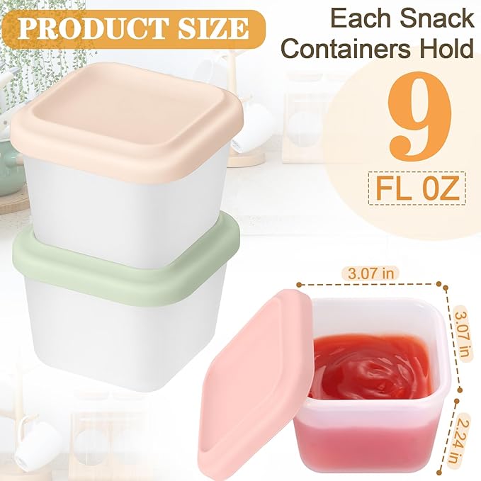 - Portable and Compact Size: Each leak proof silicone food storage container measures 3.07 x 3.07 x 2.24 inches, with a capacity of 9 ounces, which is light and easy to carry and can be easily put into a backpack or lunch bag, suitable for controlling portions or snack packaging