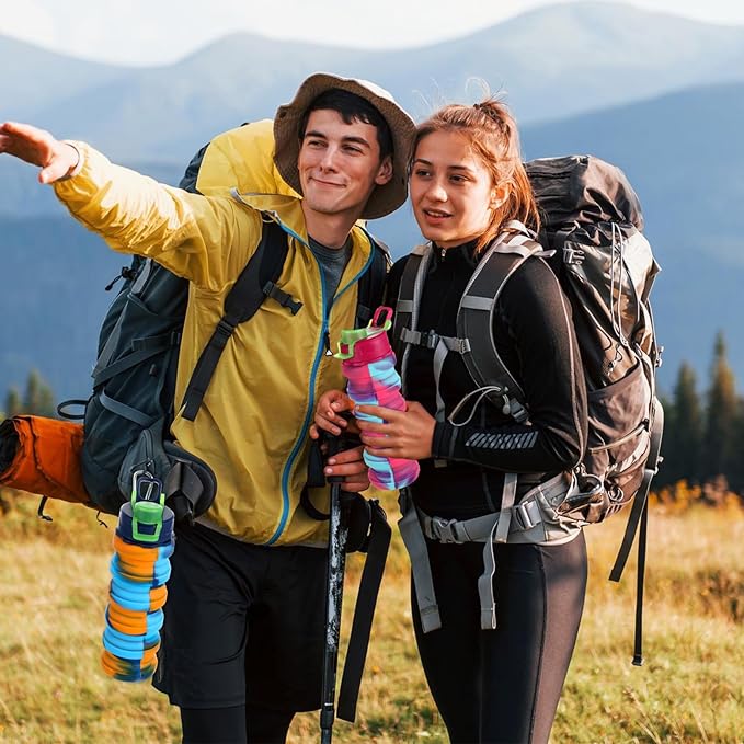 - Attach to Backpack: feature metal clips, our foldable water bottles can be firmly fixed on the backpack, school bag, fitness bag without falling, so that you can release your hands to do other things, ideal supplies for gym, commuting, work, outdoor sports