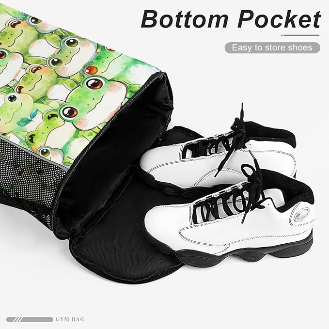 - Generous Storage Capacity: Ample space for clothing, shoes, towels, books, keys, cosmetics, wallet, and more, this frog drawstring backpack provides abundant storage for all your essentials. Awesome for gym, travel, work, and various activities.