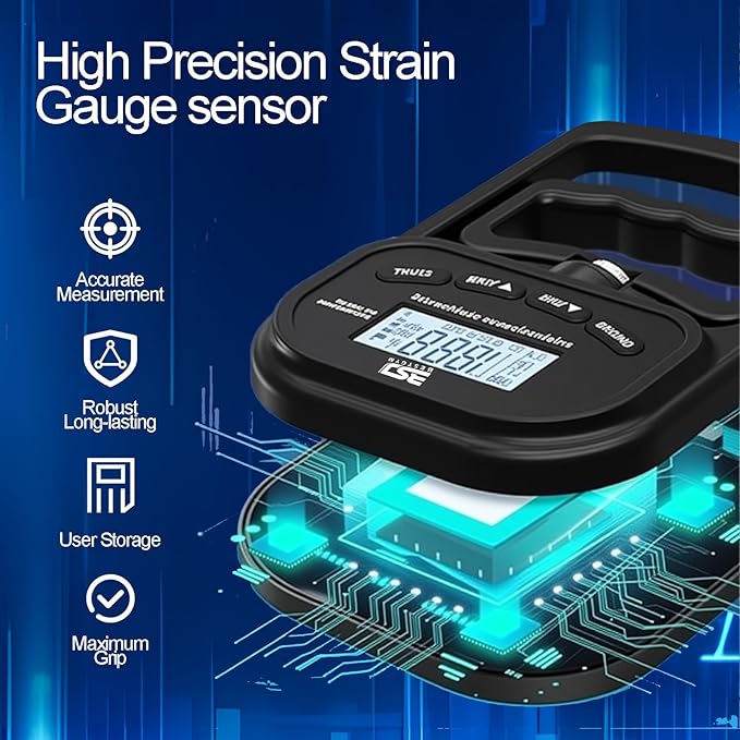- 【Precise Measurement】BSJ BESTGYM Electronic Hand Dynamometer. Equipped with a high-precision strain gauge sensor, it accurately measures grip strength up to 396 lbs (180 kg) with a resolution of 0.2 lbs/0.1 kg. Ideal for physical therapists, athletic trainers, and fitness enthusiasts, this device provides reliable grip strength data.