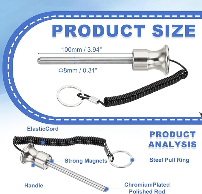 - Length: 100mm / 3.94 Inch (Approx 3-15/16"); Diameter: 8mm / 0.31 Inch (Approx 5/16"); Packing List: 1x Magnetic Weight Stack Pin (NOTE: Please confirm the size before choosing our product)