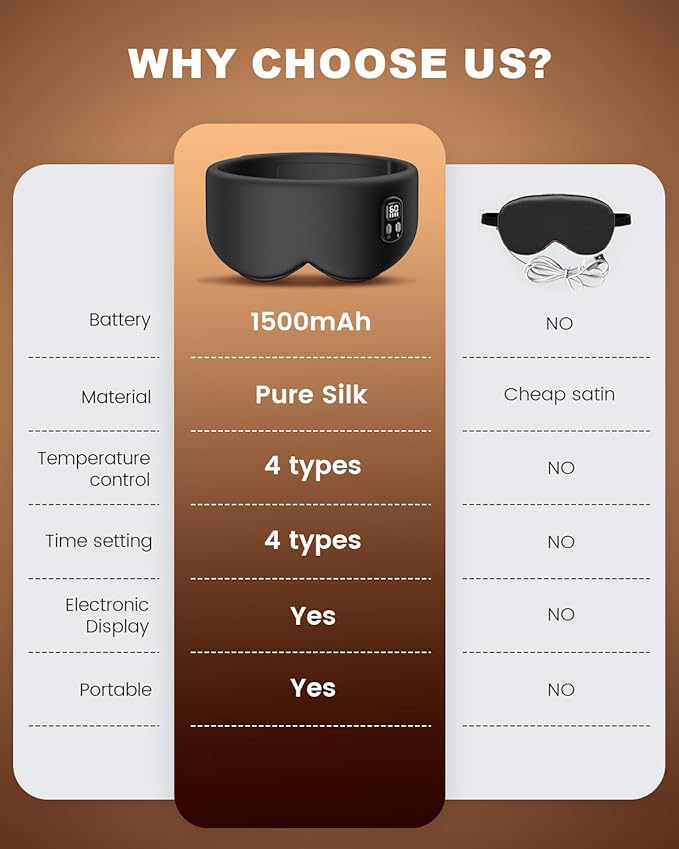 - 【Relieve eye fatigue and release stress】The graphene heating layer evenly distributes heat to the eyelids, promotes blood circulation, relieves eye fatigue, and relieves insomnia. You can adjust the temperature (4 levels) and timer usage time (4 types) according to your preferences. It is an best choice whether it is for nighttime sleep, long-distance flights, or relaxing after get off work.