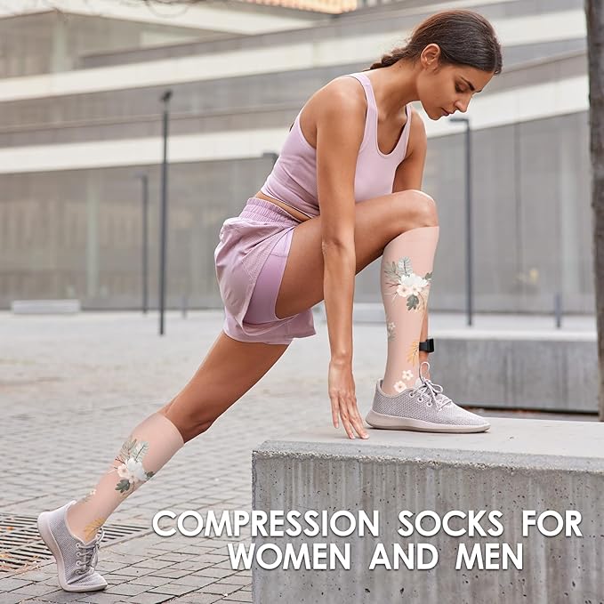 Graduated Compression Socks for Women&Men 20-30mmhg Knee High Socks Travel Hiking Running Stocking