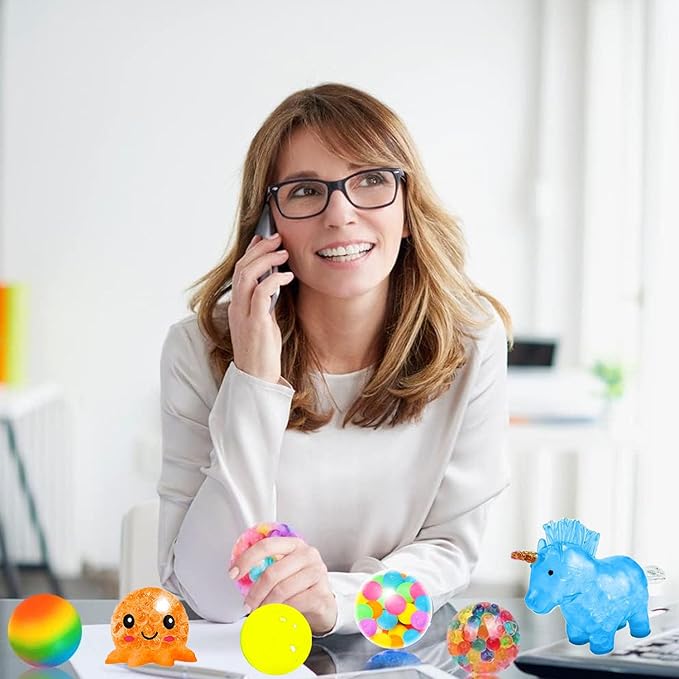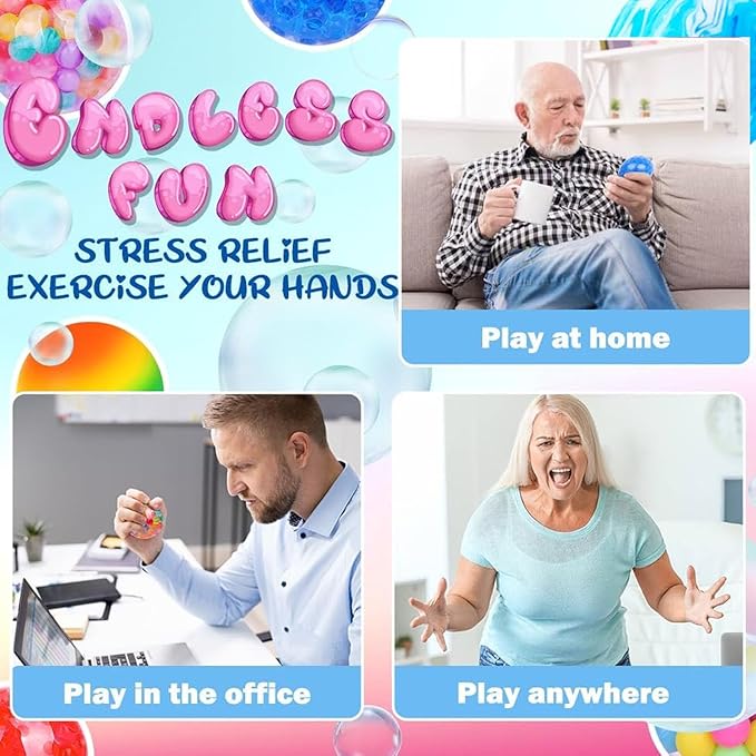 - 【Multi-Sensory Experience】Enjoy the different sensations of touch and fun with this multi-combination set of stress balls. Whether at home or in the office, squishy balls will bring joy and fun to you. You can squeeze, stretch and press these balls to crush your anxiety away. Suitable for teens, adults, and seniors with anxiety, they can benefit from the squeezing sensation and soothing touch.