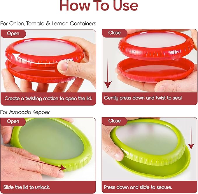 - VERSATILE & REUSABLE FOR EVERYDAY USE: This multi-size set can fit a variety of fruits and also works well for vegetables. These reusable containers can store various items, including avocados, lemons, tomatoes, and onions. They replace single-use plastic wraps, offering an environmentally friendly food storage option.