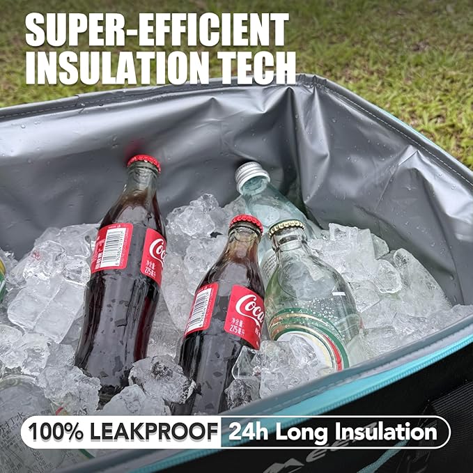 - 【40L Large Capacity & Collapsible】Our collapsible cooler, also known as a portable cooler bag, boasts a spacious 40L capacity, holding up to 70 cans (330ml each). Unlike bulky hard coolers, it's incredibly space-saving, folding down to just 5cm thick. Ideal as a camping cooler or for any outdoor adventure, simply unfold it when you're ready to use, making it a must-have for your next trip!