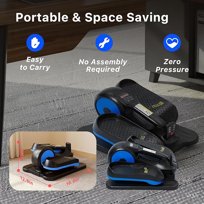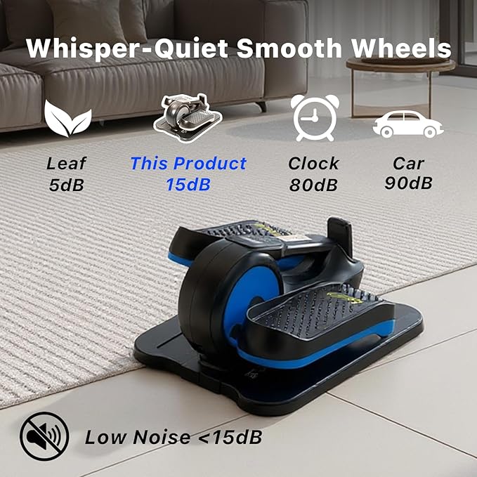 - π[Whisper-Quiet & Knee-Friendly]: Featuring silent wheels&advanced sound-dampening technology(β€13dB), making it perfect for offices, home, or shared spaces.Enjoy a quiet, consistent, and motor-driven elliptical motion for a low-impact, joint-friendly cardio workout anytime.