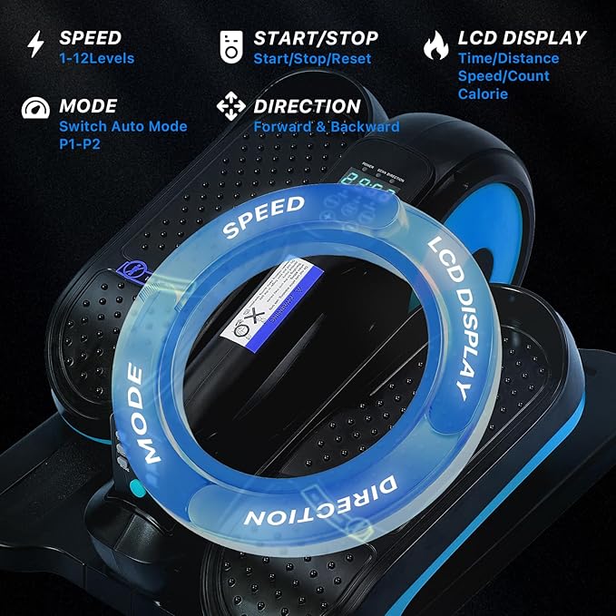 - π[2 in 1 Under Desk Elliptical Machine]: Ideal as a pedal exerciser and elliptical machine for home, the BSJ Bestgym under desk elliptical machine has Manual (12-level speed) & Auto (P1-P3) for your choice. Pedals can forward or backward to target different muscles.