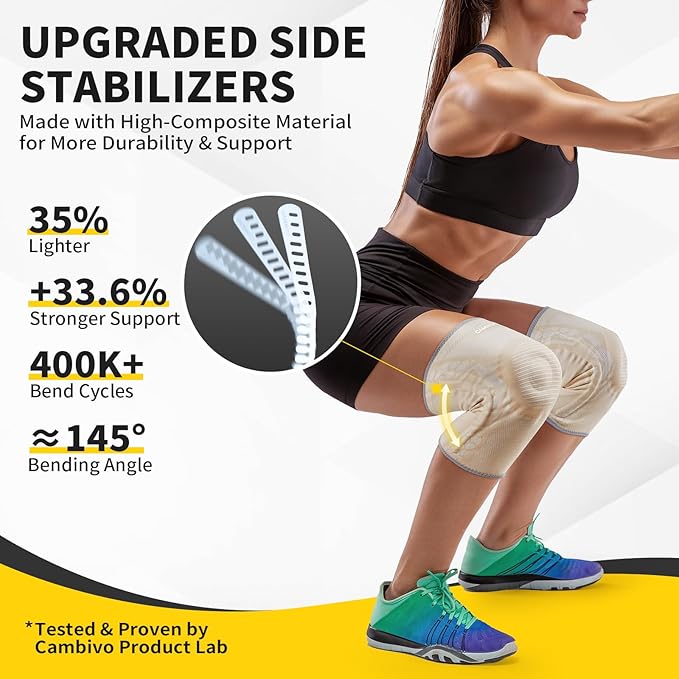 • ๐”๐ฉ๐ ๐ซ๐š๐๐ž๐ ๐’๐ข๐๐ž ๐’๐ญ๐š๐›๐ข๐ฅ๐ข๐ณ๐ž๐ซ๐ฌ: 35% lighter, 33.6% stronger support, and 400K+ bend cycles for lasting durability; with a โ‰ˆ145ยฐ bending angle, these side stabilizers ensure flexibility and stability for smooth movement; perfect for running, sports, hiking, and workouts, these stabilizers boost performance and keep your knees protected
