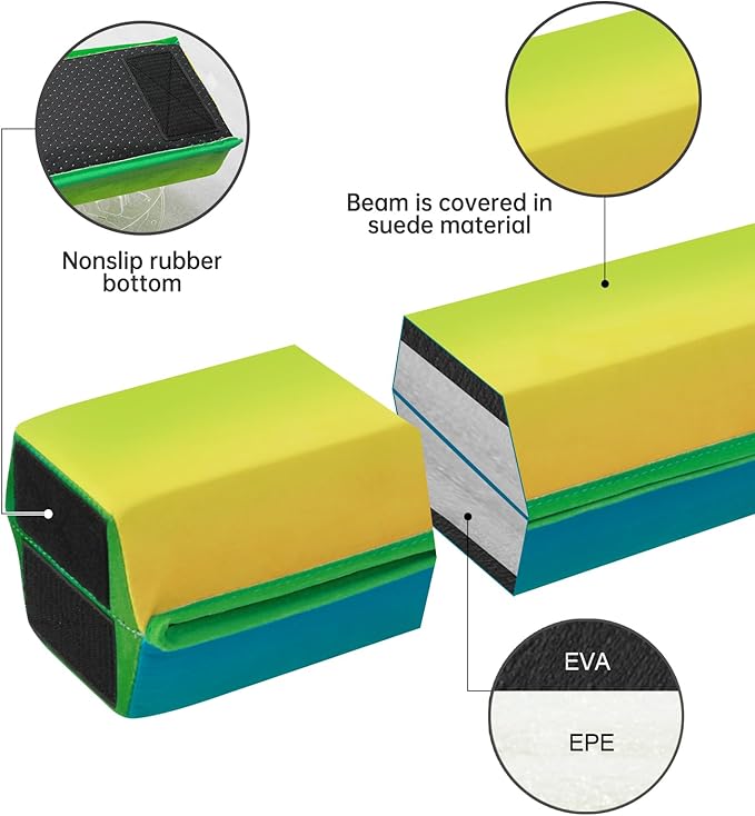 • THICK EXERCISE PAD THAT WONT FLATTEN OUT: Made of high density EVA+EPE foam, our padded beam is covered in suede-like material with a nonslip rubber bottom for a soft sturdy practice surface that won't flatten over time.