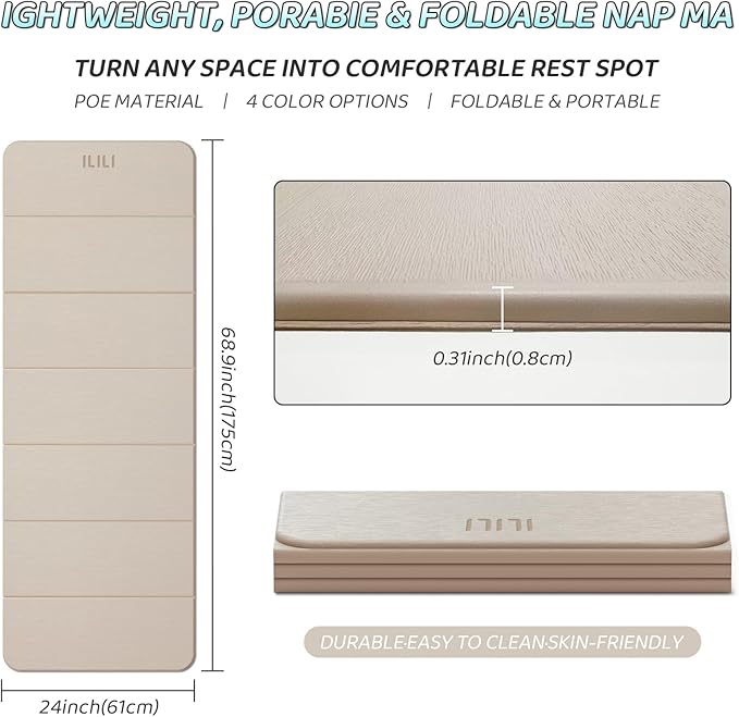 - 【7-Fold Portable Design for On-the-Go Fitness】With a compact 7-fold design, this exercise mat effortlessly folds down to a travel-friendly size, making it easy to store in closets, under beds, or even take to the office, park, or vacation. Weighing only 2lb, it’s lightweight enough to carry with one hand.