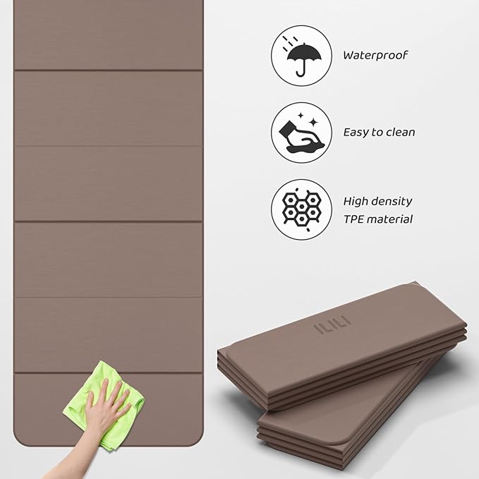 ILILI Foldable Yoga Mat 71 * 24 * 0.3'' - TPE Non-Slip Fitness Mat for Home,Waterproof & Lightweight (2lb) for Home gym, Pilates & Stretching,Fitness Workouts | 7-Fold Portable Design
