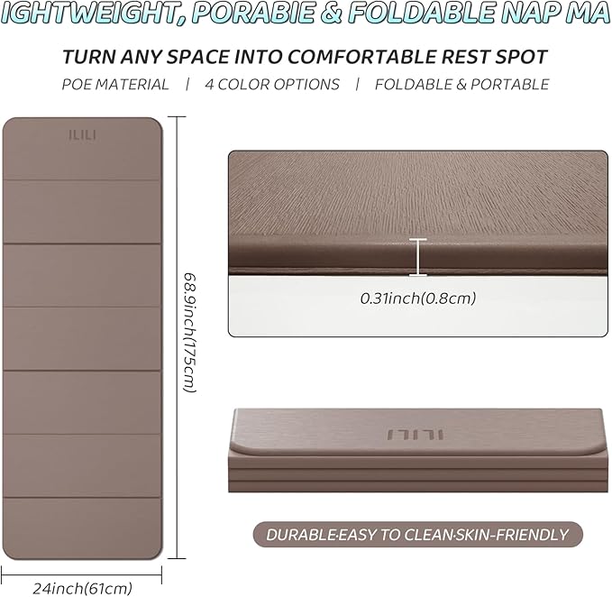 - 【7-Fold Portable Design for On-the-Go Fitness】With a compact 7-fold design, this exercise mat effortlessly folds down to a travel-friendly size, making it easy to store in closets, under beds, or even take to the office, park, or vacation. Weighing only 2lb, it’s lightweight enough to carry with one hand.