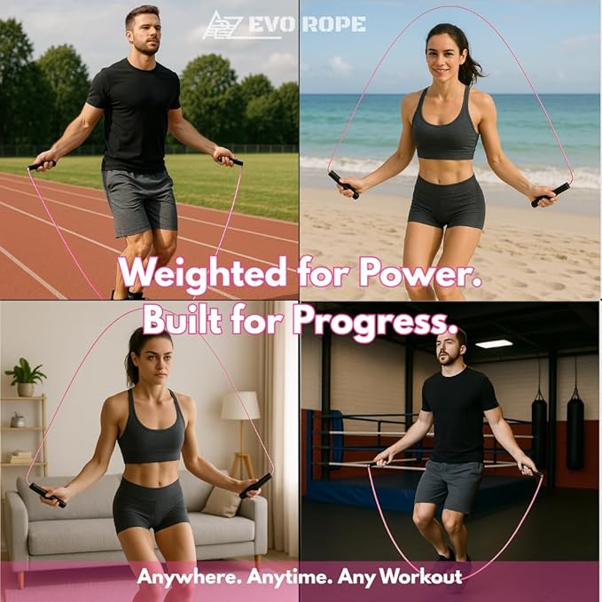 Evo Rope | 1.1LB Weighted Jump Rope for Women & Men β Adjustable 10mm Heavy PVC Skipping Rope for Fitness, Ideal for High-Intensity Training, MMA, Boxing, CrossFit, Weight-loss Workouts