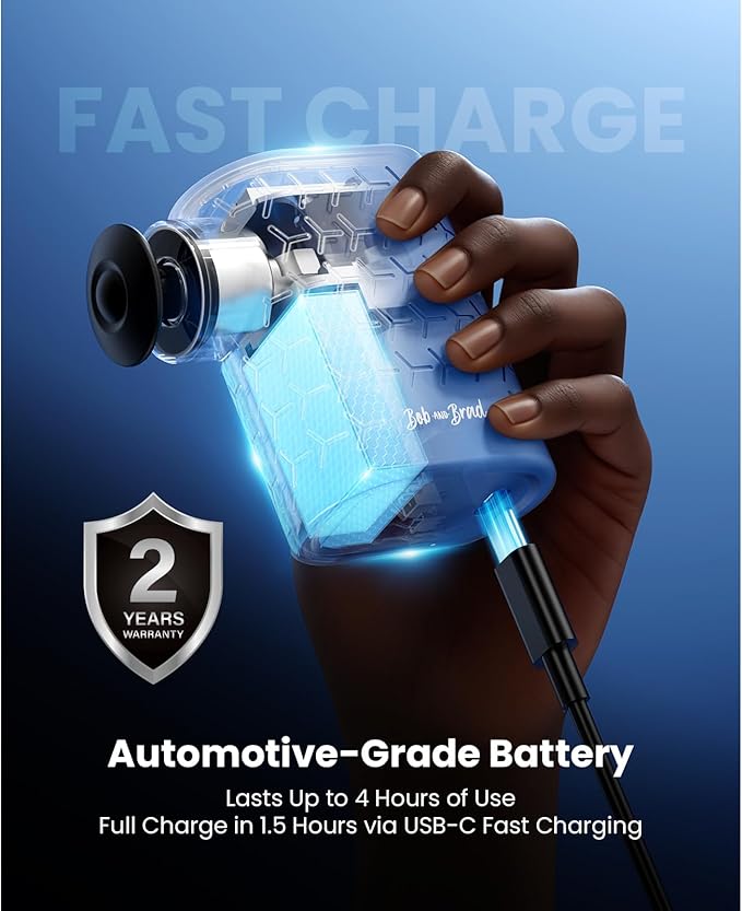 - Gentle Yet Effective Muscle Comfort: Bob and Brad P5 mini massage gun offers gentle yet effective muscle care for warm - ups, post - discomfort relaxation, and recovery. It features 1 massage head (with 3 interchangeable silicone casings) and 3 adjustable speeds (1600 - 2200 - 2800 RPM) - perfect for targeting different muscle groups, boosting circulation, and enhancing flexibility. Ideal for those who love soothing, tension - easing massages.