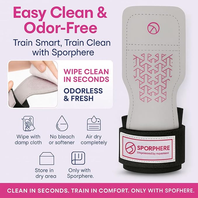 - ✨ [EASY TO STORE, EASY TO CLEAN & ODOR-FREE] – With a lightweight design of only 0.45 lbs, Sporphere pink lifting straps are portable and perfect for home, gym, or outdoor workouts. Made with premium microfiber, silicone, and neoprene, they wipe clean effortlessly with a damp towel—keeping them fresh and odor-free even after intense training. Ideal gym straps for women who value style, performance, and hygiene, making every workout safer, more effective, and hassle-free. Essential lifting straps women and workout grips for women accessories for easy, dependable use at home or the gym, making every workout safer and more effective. These are your perfect lifting wrist straps.