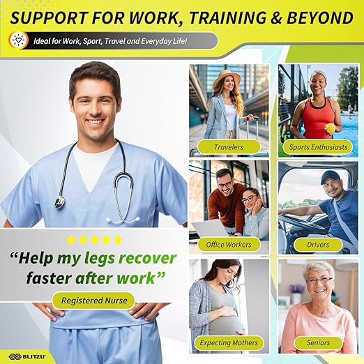 - Effective Graduated Compression for Swelling & Varicose Veins Relief: BLITZU Leg Compression Sleeve delivers targeted compression to enhance blood flow, reduce leg swelling, and relieve pain from varicose veins and pregnancy-related edema. Ideal for nursing mothers, individuals with poor circulation, and anyone seeking compression therapy for relief from leg pain and swelling.