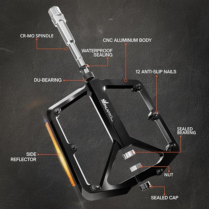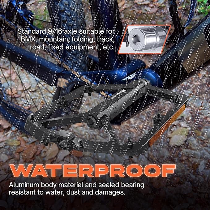 - SEALED HIGH-PERFORMANCE BEARINGS: These bike pedals use premium sealed bearings that keep out dust, water, and mud, ensuring a smooth, quiet, and durable ride even in extreme conditions and rough terrain. Ideal as mountain bike pedals for technical trails and also as road bike pedals for long-distance rides on tarmac.