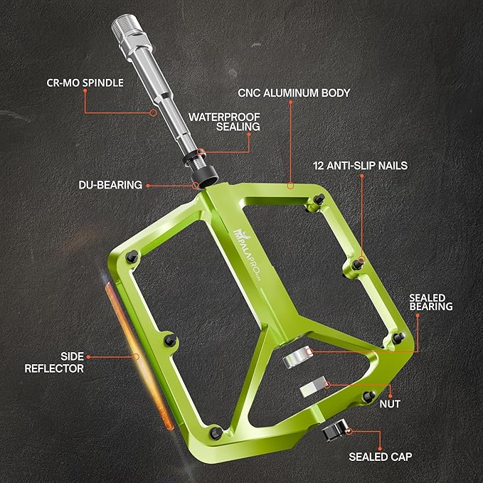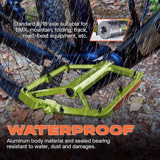- SEALED HIGH-PERFORMANCE BEARINGS: These bike pedals use premium sealed bearings that keep out dust, water, and mud, ensuring a smooth, quiet, and durable ride even in extreme conditions and rough terrain. Ideal as mountain bike pedals for technical trails and also as road bike pedals for long-distance rides on tarmac.