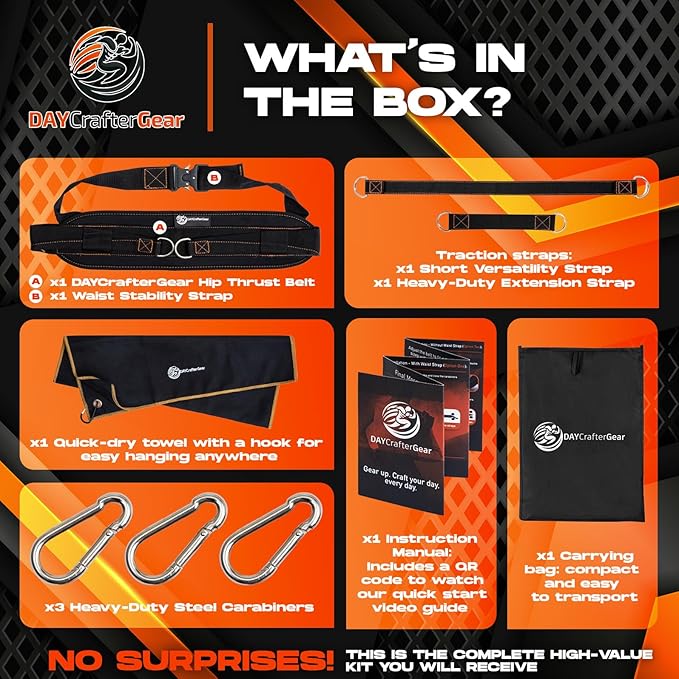 - Complete Heavy-Duty Kit: Includes everything you need, packed in carrying bag for home or gym use. To ensure you master every exercise safely and effectively, we provide detailed setup and workout video guides for your new hipthrust belt.