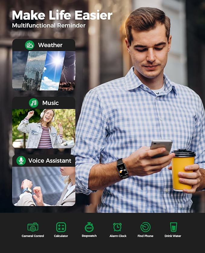 - 【24H Accurate Health Monitoring】Smart watches for women adopt advanced sensors to accurately monitor your 24/7 blood oxygen, blood pressure and heart rate. Smart watches for men can also professionally interpret the sleep characteristics at each stage and analyzes sleep quality including deep sleep, light sleep, and wake-up times. You can view real-time data on this running watch at any time, or view the recorded continuous data and analysis reports on the App.