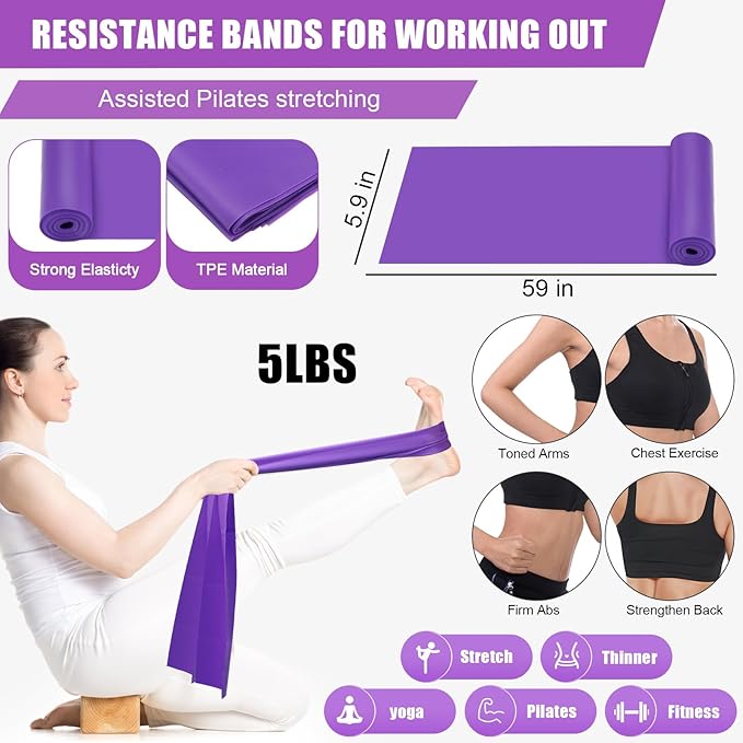- Classic Color and Size: the set reflects an aesthetically pleasing color scheme where the pilates equipment is available in gradient tones including changes from light purple to dark purple; Perfectly sized, the fitness drawstring bag measures 16.54 x 13.39 inches/ 42 x 34 cm, yoga elastic band is 59.06 x 5.91 inches/ 150 x 15 cm, whereas the yoga ring is 11.81 inches/ 30 cm for maximum convenience and effective performance