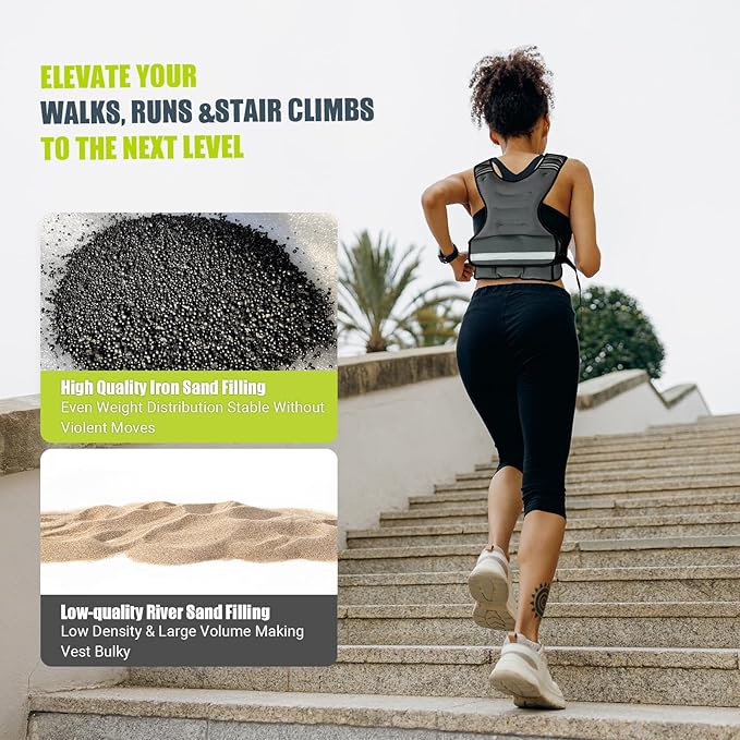 - [INNOVATIVE, RELIABLE, CUSTOMER-CENTRIC] Our adjustable weighted vest for women helps burn more calories, improve cardiovascular health, also enhances your posture, shape, and balance. We are committed to providing exceptional brand service, ensuring every workout is effective and reassuring. You'll receive a detailed user manual to help you make the most of the adjustable weighted vest for walking. If you encounter any issues during use, we are here to provide you with satisfactory solutions.