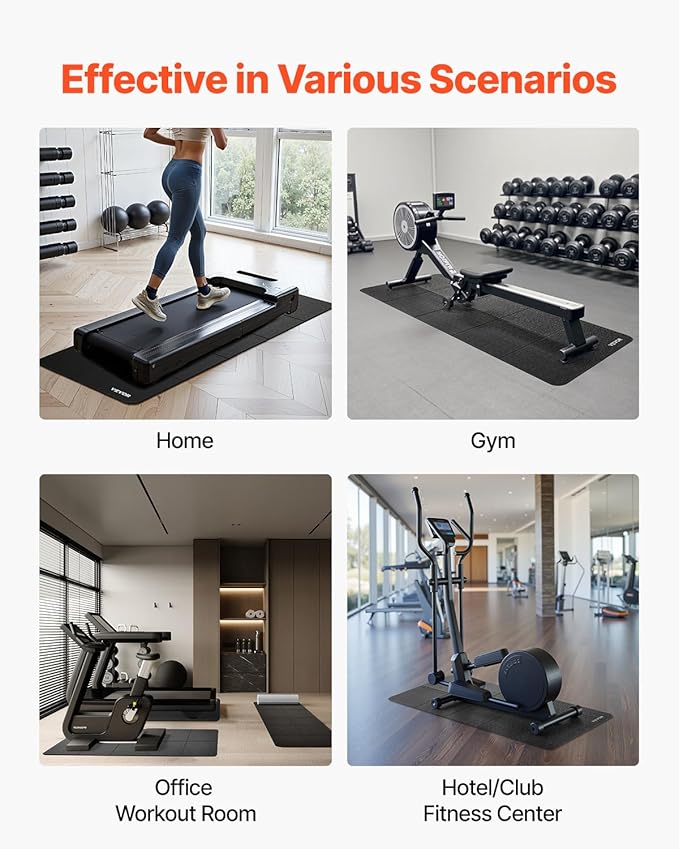 - Non-Slip & Noise Reduction: With a thickness of 0.24 in / 6 mm, the exercise equipment mat effectively absorbs vibrations, reduces equipment noise, and prevents equipment from sliding or shifting during use, ensuring stability and security